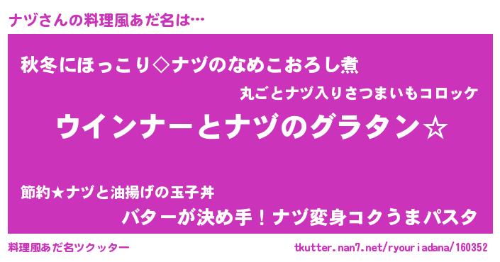 | ヘコむあだ名 | 『豆乳』『ナヅにー』『ナヅ(笑)』 |