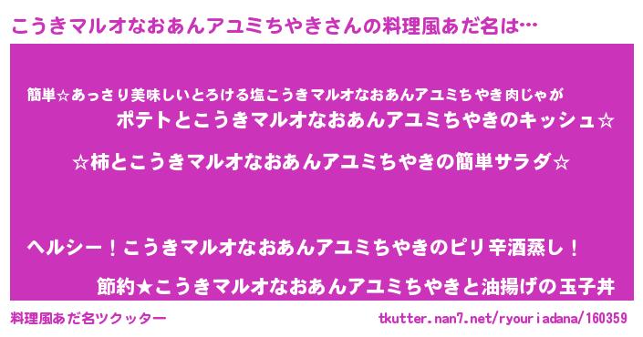 | ヘコむあだ名 | 『こうきマルオなおあんアユミちやき(遠い目)』 |