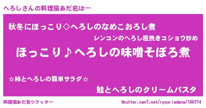 | ヒーロー風カッコイイあだ名 | 『スーパーヘロシ』『天空の使者へろし』 |