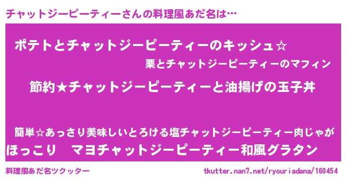 | 恥ずかしいあだ名 | 『プリティーチャットジーピーティー』 |