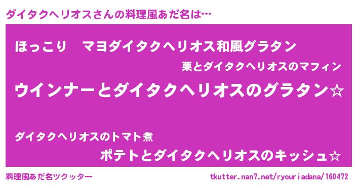 | ヒーロー風カッコイイあだ名 | 『ウルトラダイタクヘリオスマン』 |