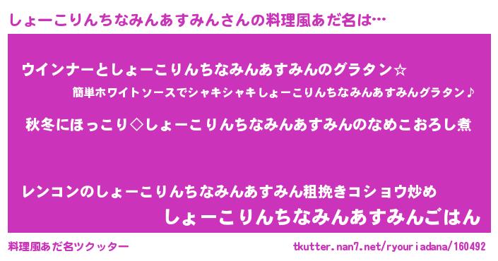 | 男性向けラノベタイトル風あだ名 | 『しょーこりんちなみんあすみんに滅ぼされるだけの簡単なお仕事です』 |