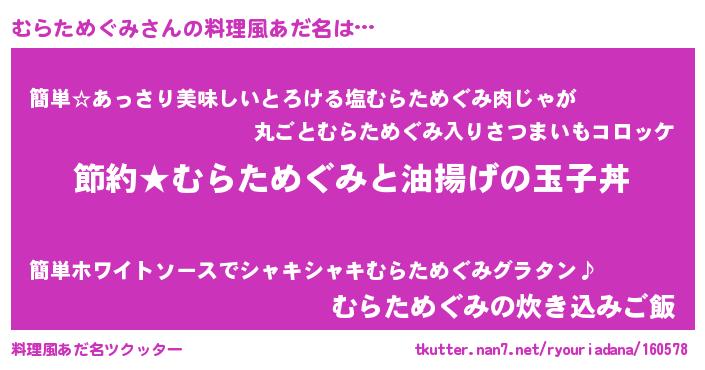 | ヒーロー風カッコイイあだ名 | 『スーパームラタメグミ』『仮面ムラダー』 |