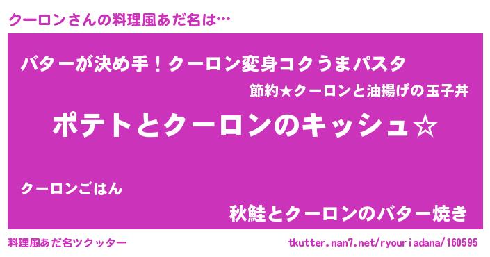 | ヘコむあだ名 | 『クーぷりん』『クーロン(苦笑)』 |