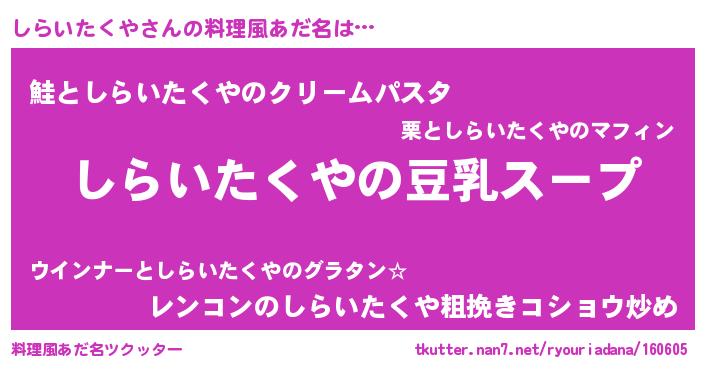 | ピコ太郎風あだ名 | 『シラ史郎』『シシ太郎』『ピシ六郎』 |