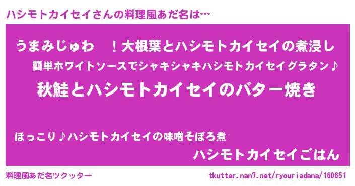 | 胡散臭い通販商品みたいなあだ名 | 『来世でも幸せになれる健康食品…その名も「ハシモトカイセイ」』 |