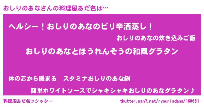 | 胡散臭い通販商品みたいなあだ名 | 『芸能人もオススメするアガリクス…その名も「おしりのあな」』 |