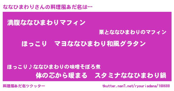 | 意味不明あだ名 | 『住所不定無職ななひまわり(81歳)』 |