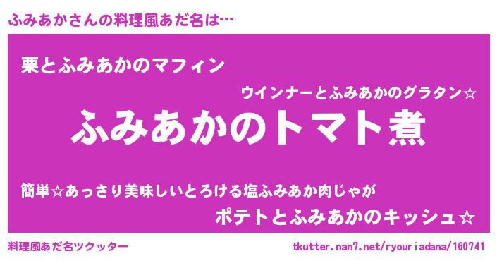 | 欧米人風あだ名 | 『ダニエルふみあか』『ウサインふみあか』 |