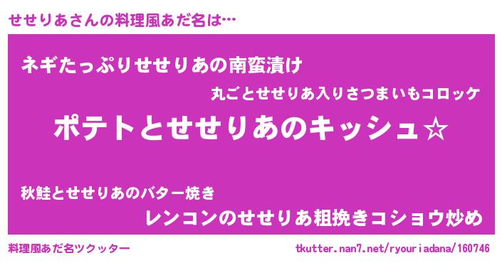 | 意味不明あだ名 | 『とにかく怪しいせせりあ』 |