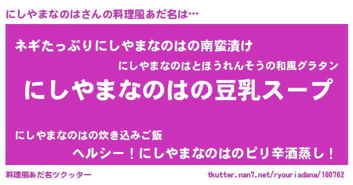 | 意味不明あだ名 | 『とにかく怪しいにしやまなのは』 |