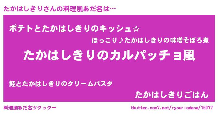 | ヒーロー風カッコイイあだ名 | 『仮面タカダー』『幻影騎士タカ』 |