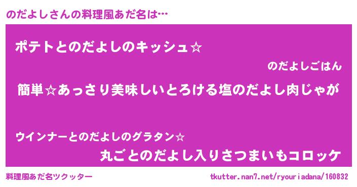 | 胡散臭い通販商品みたいなあだ名 | 『前代未聞の水素水…その名も「のだよし」』 |