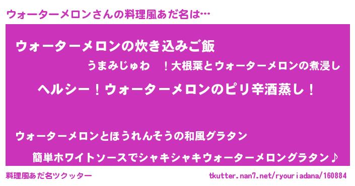 | 男性向けラノベタイトル風あだ名 | 『Re:ウォーターメロンから始める異世界生活』 |
