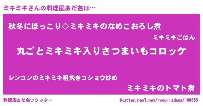 | 意味不明あだ名 | 『住所不定無職ミキミキ(68歳)』 |
