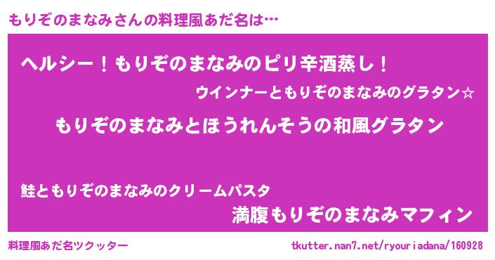 | 恥ずかしいあだ名 | 『モリゾノマナミデラックス』『もりちん』 |