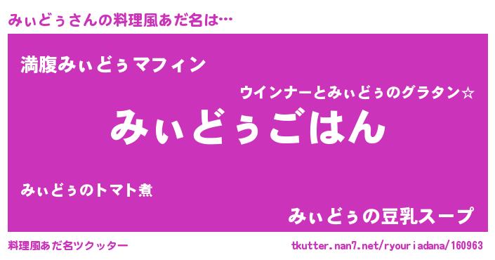 | ヘコむあだ名 | 『みぃどぅ(笑)』『みぃっ子』『豆乳』 |