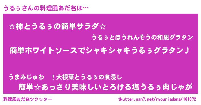 | ピコ太郎風あだ名 | 『ウル十郎』『ピコウ郎』『ピウ一郎』 |