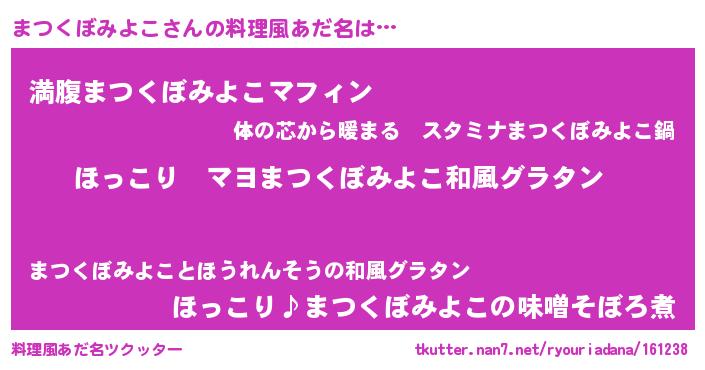 | 胡散臭い通販商品みたいなあだ名 | 『あなたにだけ特別に提供する世界で10本だけ現存している希少なブランデー…その名も「まつくぼみよこ」』 |