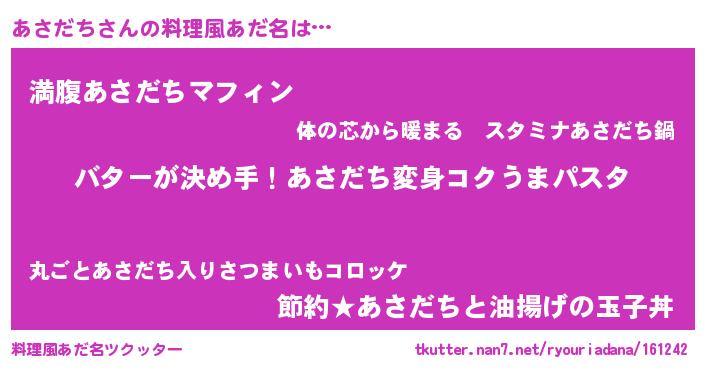 | ヒーロー風カッコイイあだ名 | 『友情の使者あさだち』『ネオアサダチ』 |