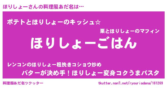 | 男性向けラノベタイトル風あだ名 | 『ホリショースレイヤー』 |