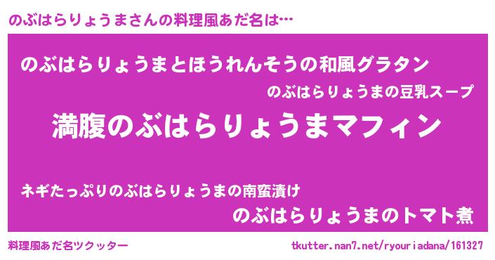 | ヘコむあだ名 | 『のぶはらりょうま(笑)』『のぶを』 |
