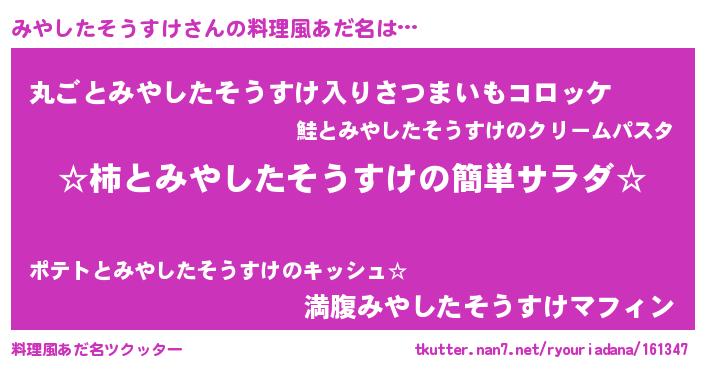 | ヘコむあだ名 | 『みやしたそうすけ(爆)』『みやぷりん』 |