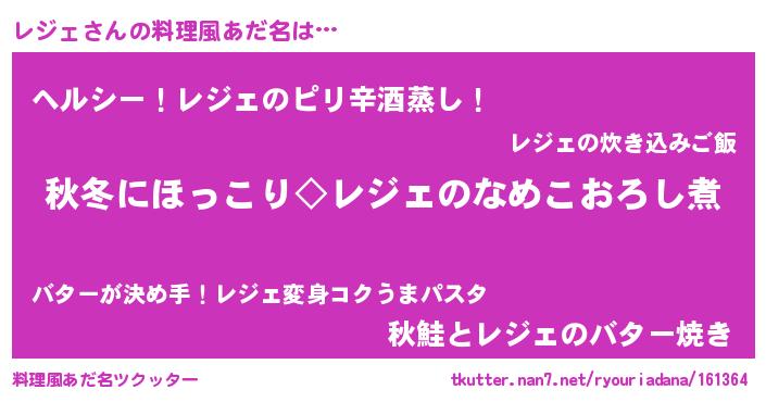 | ヘコむあだ名 | 『レジェ(爆)』『レジもー』 |
