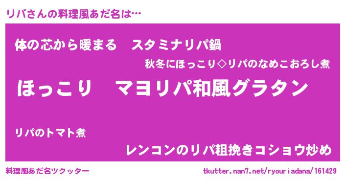 | 男性向けラノベタイトル風あだ名 | 『この素晴らしい世界にリパを!』 |