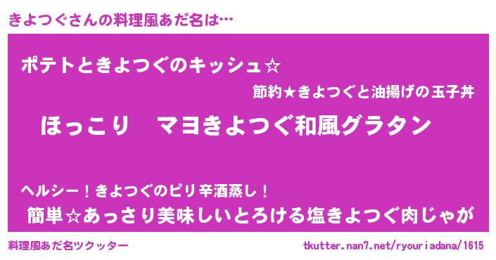 | 男性向けラノベタイトル風あだ名 | 『この素晴らしい世界にきよつぐを!』 |