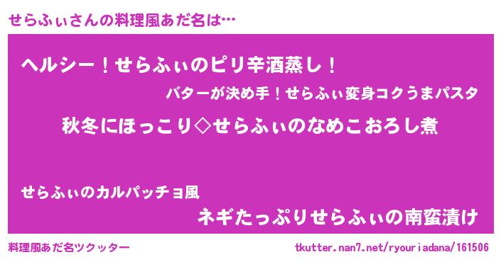 | ヘコむあだ名 | 『せらもー』『せらぷりん』『豆乳』 |