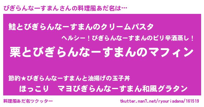 | 意味不明あだ名 | 『眠気覚ましガムびぎらんなーすまん味』 |