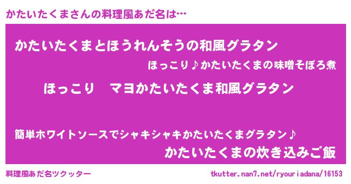 | 意味不明あだ名 | 『住所不定無職かたいたくま(89歳)』 |