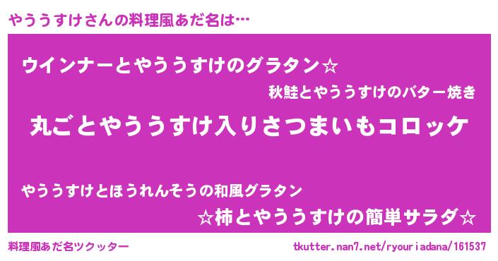| ヒーロー風カッコイイあだ名 | 『仮面ヤウダー』『ネオヤウウスケ』 |