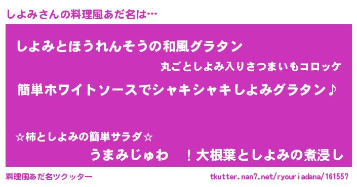 | ヘコむあだ名 | 『しよを』『レバニラ』『しよみ(笑)』 |