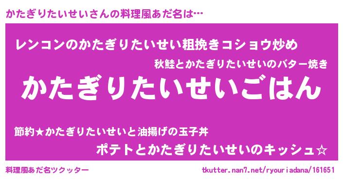 | 欧米人風あだ名 | 『トリンドルかたぎりたいせい』 |