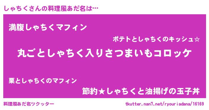 | 意味不明あだ名 | 『住所不定無職しゃちく(50歳)』 |
