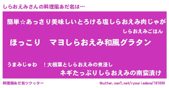 | ヒーロー風カッコイイあだ名 | 『仮面シラダー』『ネオシラオエミ』 |