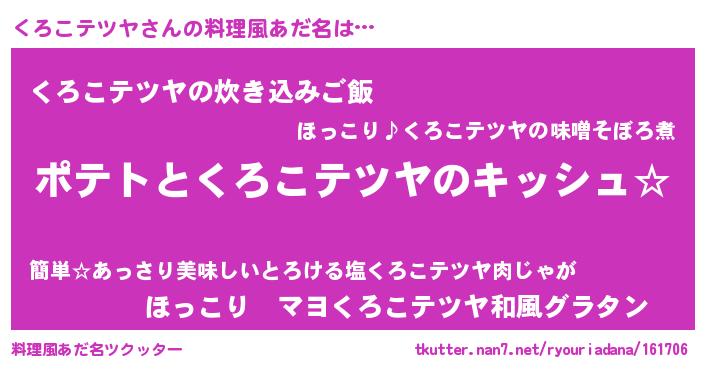 | 男性向けラノベタイトル風あだ名 | 『くろこテツヤの嫁は女の子じゃないと思った?』 |