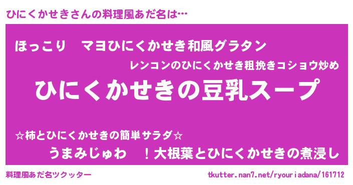 | 胡散臭い通販商品みたいなあだ名 | 『信頼と実績のサプリメント…その名も「ひにくかせき」』 |