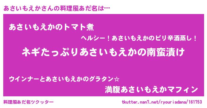 | ヘコむあだ名 | 『あさふぇ~』『あさいもえか(爆)』 |
