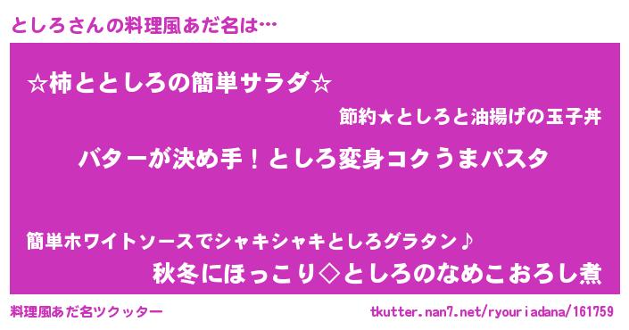 | 女子向けラノベタイトル風あだ名 | 『としろ恋絵巻』『横柄としろと宰相陛下』 |