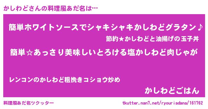 | ヘコむあだ名 | 『かしわど(遠い目)』『かしを』 |