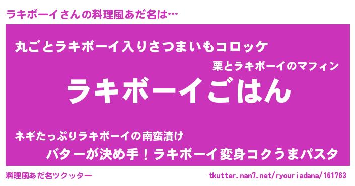 | ヒーロー風カッコイイあだ名 | 『仮面ラキダー』『愛の使者ラキボーイ』 |