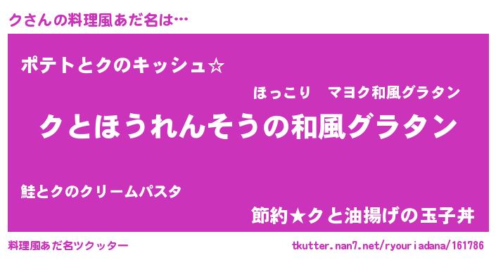 | 女子向けラノベタイトル風あだ名 | 『クの玉の輿計画!』『ク姫と円卓の騎士』 |
