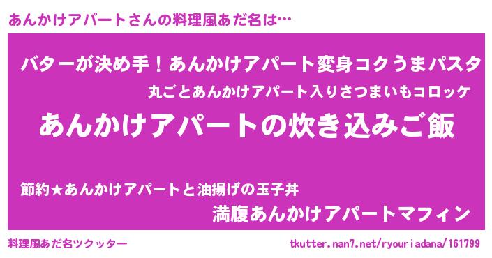 | ヘコむあだ名 | 『あんかけアパート(笑)』『あんっふぃ~』 |