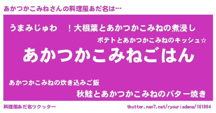 | 意味不明あだ名 | 『めかぶ科あかつかこみね属』 |