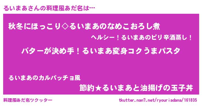| ヘコむあだ名 | 『るいにー』『るいまあ(震え声)』 |