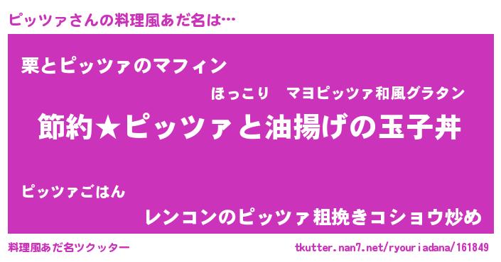 | 男性向けラノベタイトル風あだ名 | 『ピッツァの憂鬱』『ピッツァスレイヤー』 |