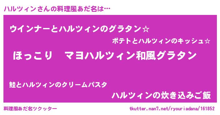 | 胡散臭い通販商品みたいなあだ名 | 『あなたにだけ特別に提供する100年もののヴィンテージワイン…その名も「ハルツィン」』 |